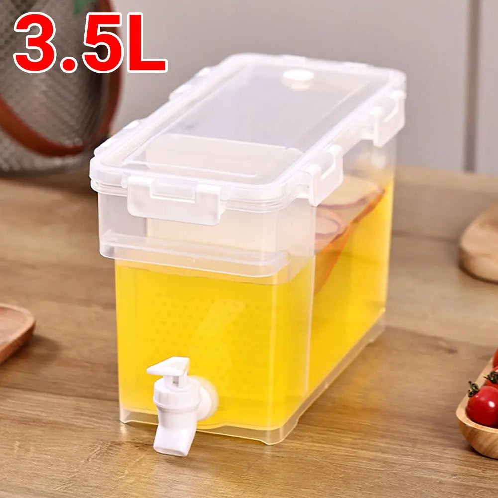 Features: 1.350ml Large Capacity: This beverage dispenser holds enough liquid to meet the demands of many, reducing the need for frequent refills. It's time-saving and user-friendly, perfect for gatherings or daily use. 2.Unique Tap Design: The water dispenser features an innovative tap mechanism that allows you to effortlessly dispense water with a gentle press. 3.Sturdy Food-Grade Material: Crafted from food-grade PP material, this drink dispenser is reusable, sturdy, and built to last, ensuring safe consumption. 4.Compact Size for Refrigerators: The juice dispenser's compact design makes it ideal for refrigerator storage without taking up significant space, providing cold drinks on demand. 5.Versatile Use: Adaptable for storing water, lemonade, milk, coffee, juice, and tea, this cold kettle dispenser helps maintain an organized fridge. Specification: Origin: Mainland China Product size: 305.00x285.00x175.00mm/12.01x11.22x6.89inch Material: PP Capacity: 3.5L Note: Due to different monitor settings and lighting conditions, the actual color of the item may vary slightly from the pictures. Thanks for your understanding! Please allow a 1-2 cm difference in measurements due to manual measuring. ![]() 1 x Beverage Dispenser